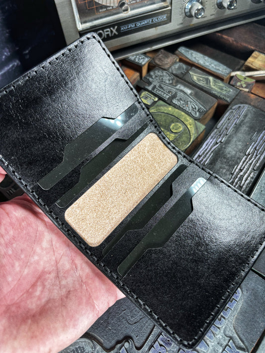 Handmade 6 Pocket Black Star Branded Marbled Leather Bifold Minimalist Wallet