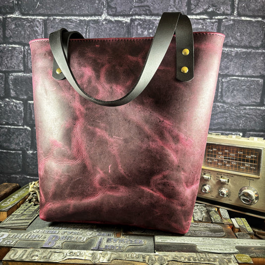 Deep Pink Pull up Full Grain Leather Tote Bag
