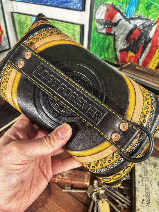 LOST Circles Black Handmade Leather Envelope Clutch