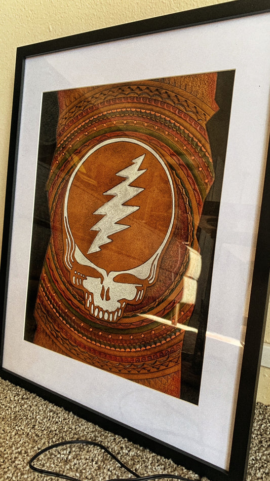 1/1 Leather Hand Tooled and Painted Stealie Framed Art Piece
