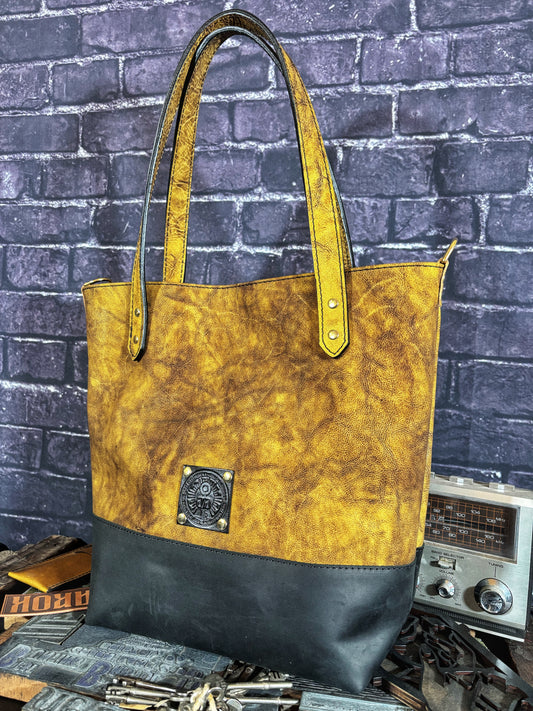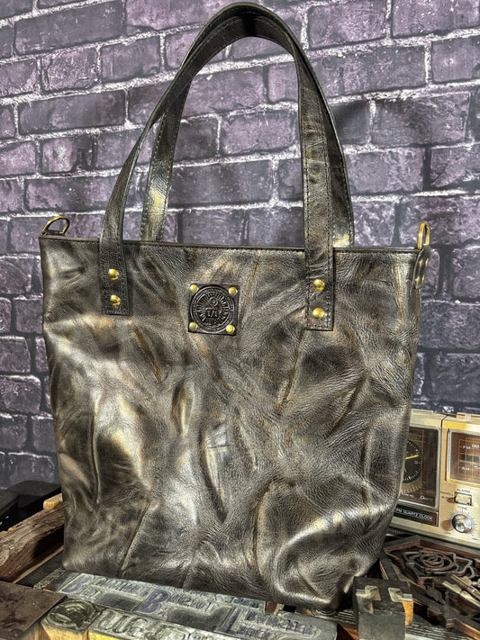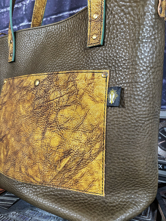 Prehistoric Green/Black Handmade Leather Tote Bag
