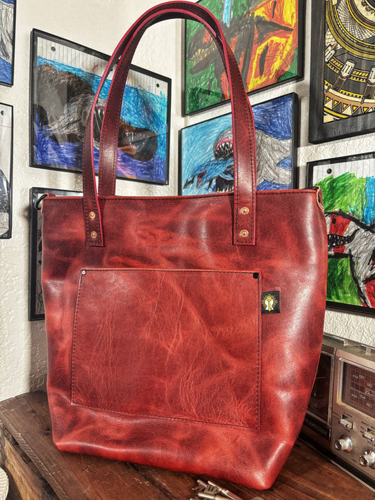 Bloodlust 1/1 Red Handmade Full Grain Leather Tote Bag