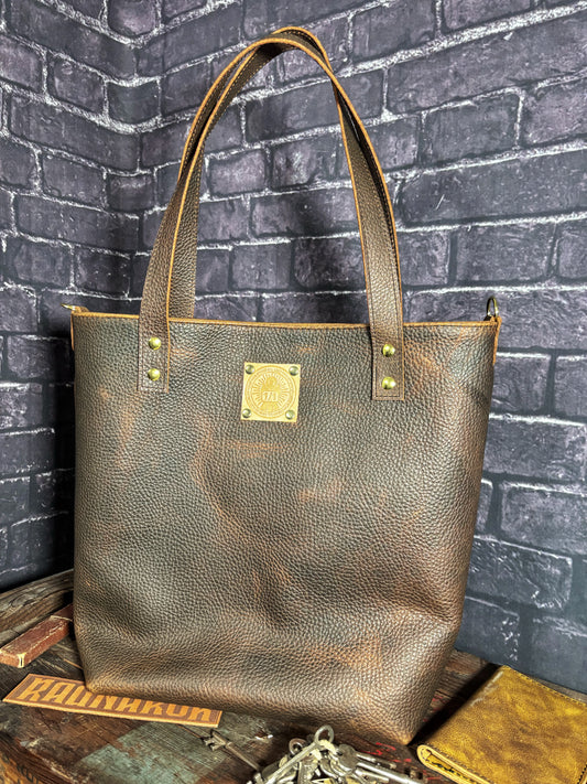 EJ Branded Brown Pebbled Handmade Leather Tote Bag