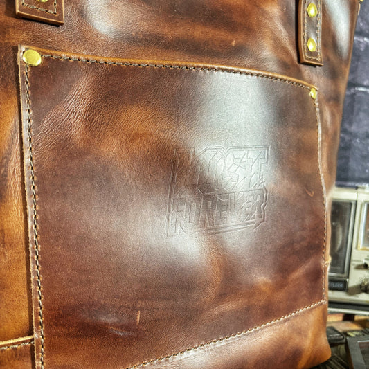 Handmade One of a Kind Grateful Dead Full Grain Brown Leather Tote Bag