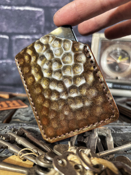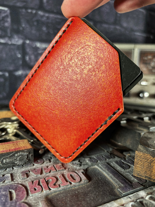 Metallic Orange Lost Reaper Embossed Hand Made Leather Minimalist Wallet