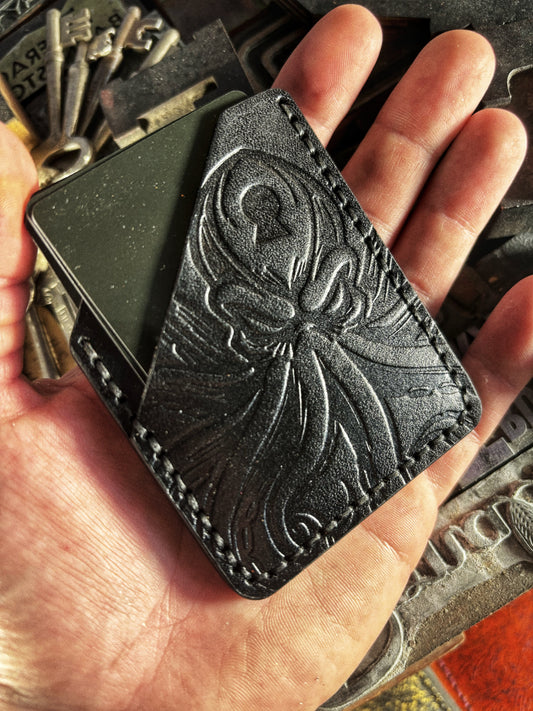 Black Lost Reaper Embossed Hand Made Leather Minimalist Wallet