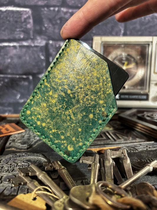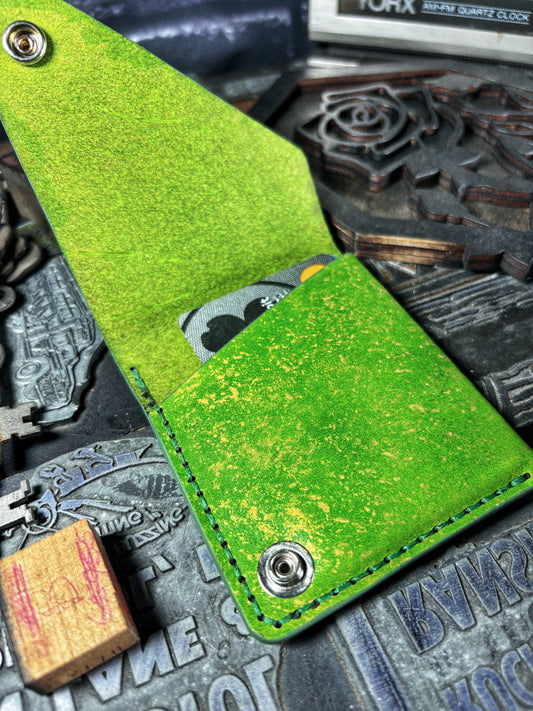 Hammered Green & Gold Grateful Dead Embossed Hand Made Leather Minimalist Wallet