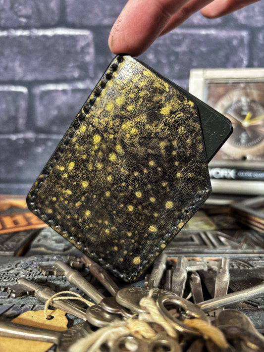 (Only 1) Handmade 6 Pocket Grateful Dead Marbled Yellow/Black Leather Bifold Minimalist Wallet