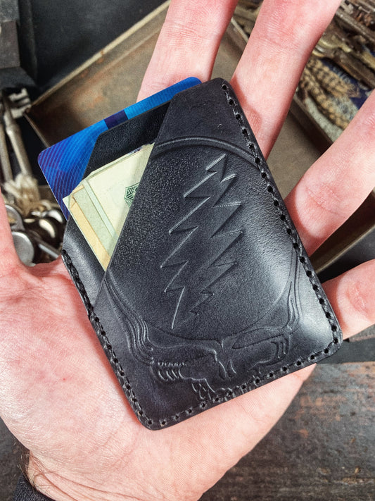 Black Grateful Dead Embossed Hand Made Leather Minimalist Wallet