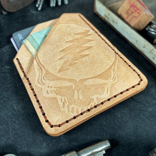 [Limited Edition] Honey Rust Grateful Dead Embossed Hand Made Leather Minimalist Wallet