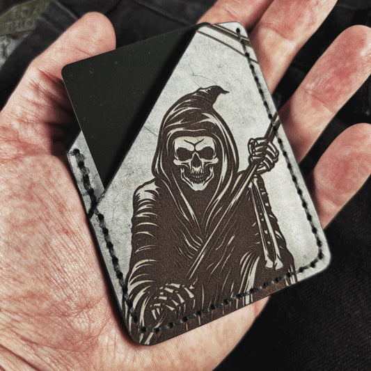 Ghost Reaper Engraved Hand Made Leather Minimalist Wallet