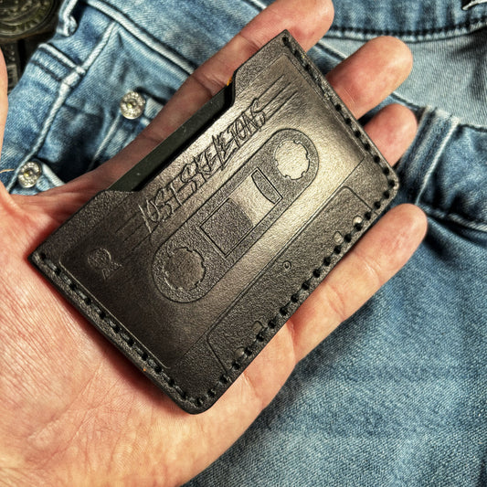 Cassette Tape Embossed Black and Yellow Hand Made Leather Horizontal Minimalist Wallet