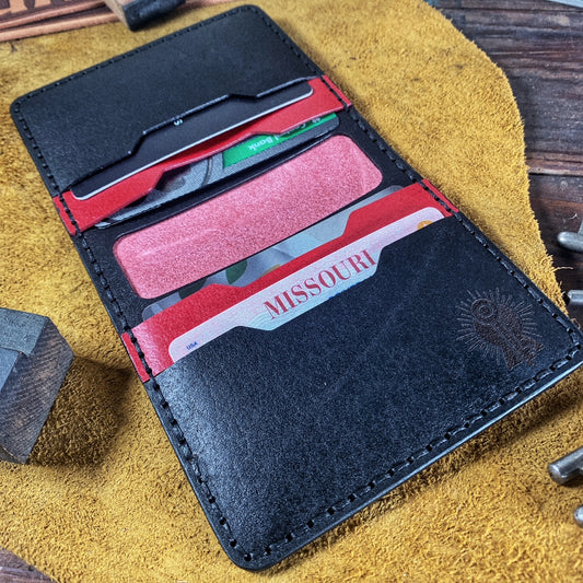 Handmade 6 Pocket Black/Yellow/Red Marbled Leather Bifold Minimalist Wallet